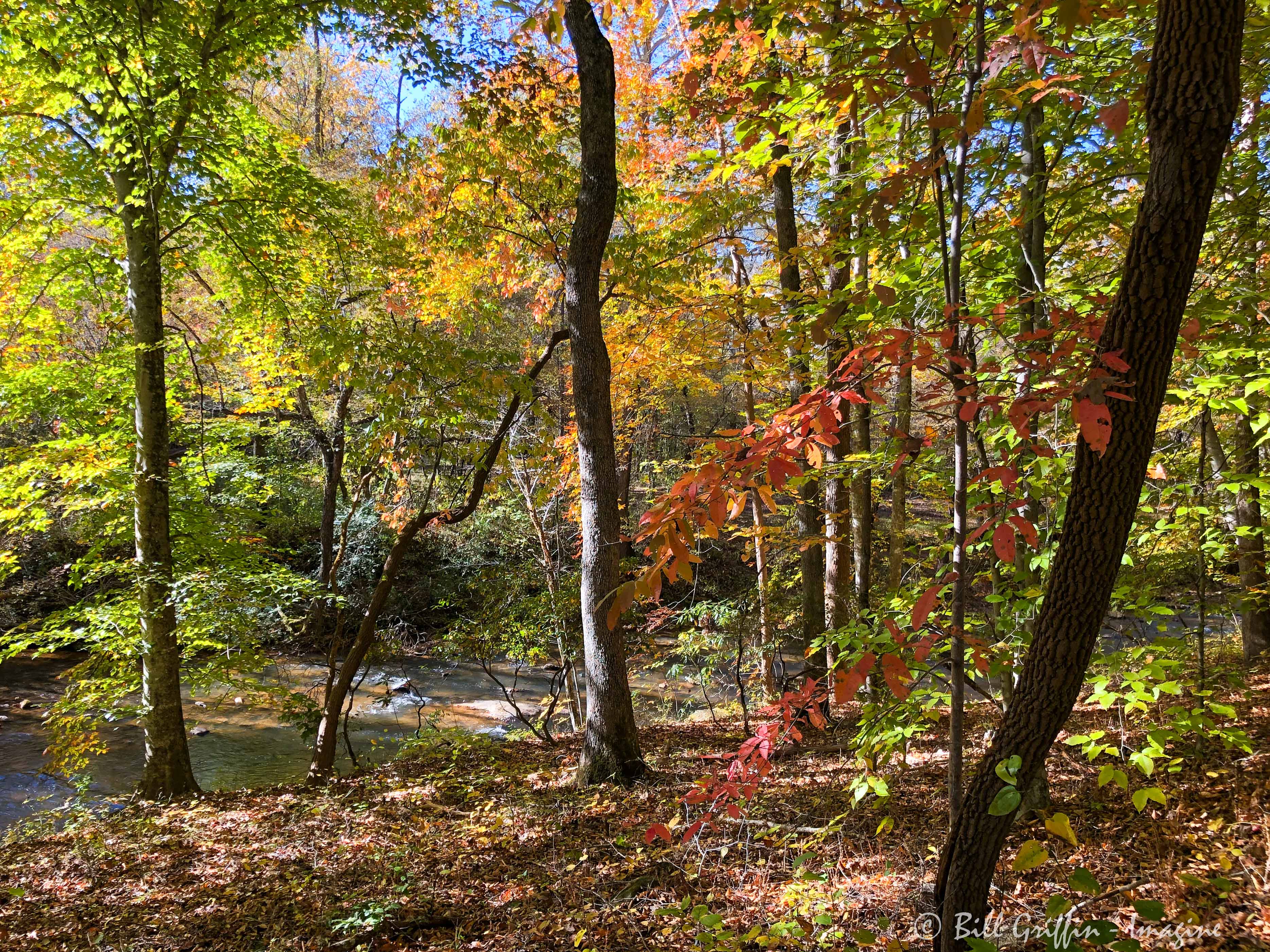 To green mountains, cold river by the leaves