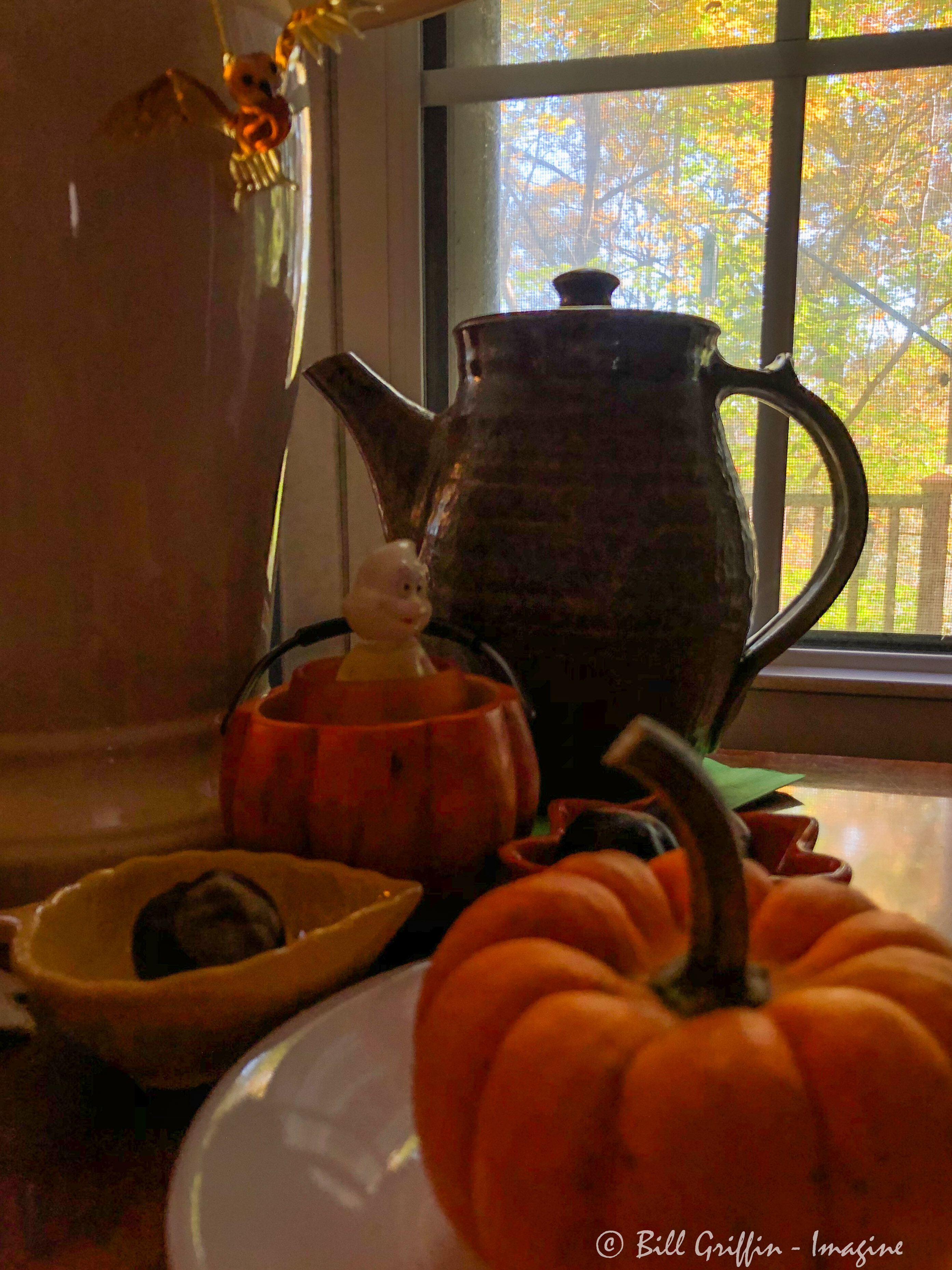 We’re driving through residential Ardmore in Winston-Salem, just the two of us. An outing! On our way to the pharmacy and yes, we’ll pick up a prescription for Dad, but this is one time we made him stay home. Dad’s 96th birthday is Thursday and this is Mom’s chance to pick out a card, maybe a few goodies. And see all the Halloween decorations.