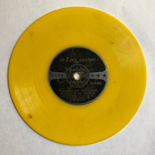 And that little yellow record? Easter Parade. Sixty-five years later I still find no evidence that there has ever been such a parade, but now the melody has wormed it’s way in again: “In your Easter bonnet, with all the frills upon it . . .” And even so, my mother somehow remained sane.